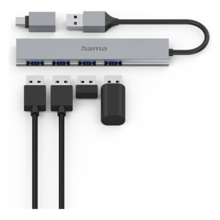 HAMA USB HUB, 4 PORTS, USB 3.2 GEN 1, 5 GBIT/S, ULTRA-SLIM, INCL. USB-C ADAPTER