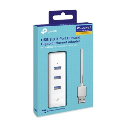 TP-LINK USB 3.0 to Gigabit Ethernet Network Adapter 3-Port USB 3.0 Hub 1 USB 3.0 connector 1 Gigabit Ethernet port 3 USB 3.0 ports