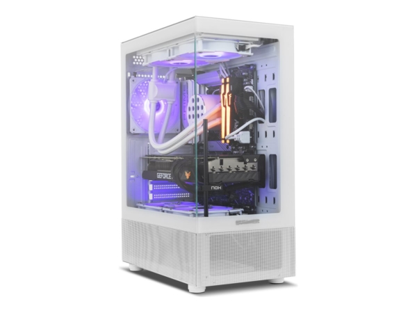O chassis NOX Hummer Vision Mid-Tower da Atlas Informática combina design prático com funcionalidade. O seu formato elegante em torre é complementado por um painel lateral com janela em vidro temperado, permitindo ver os componentes internos e proporcionando fluxo de ar suficiente. Este gabinete possui um sistema eficaz de gestão de cabos para manter uma aparência organizada, acomodando várias configurações com os seus três compartimentos internos e sete slots de expansão, tornando-o adequado para uma variedade de montagens.