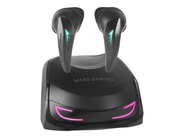 - MARS GAMING MHIULTRA TRUE WIRELESS EARPHONES, BT 5.3, QI CHARGE, RGB, 24H, BLACK
