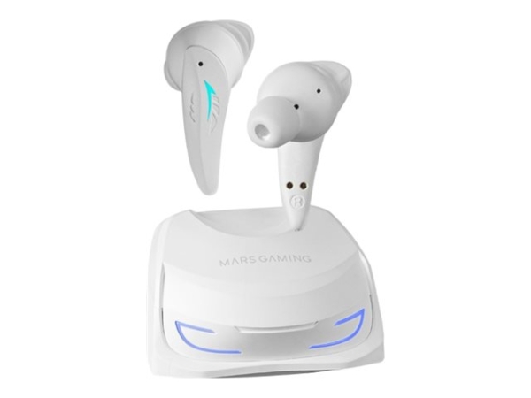 - MARS GAMING MHIULTRAW TRUE WIRELESS EARPHONES, BT 5.3, QI CHARGE, RGB, 24H, WHITE