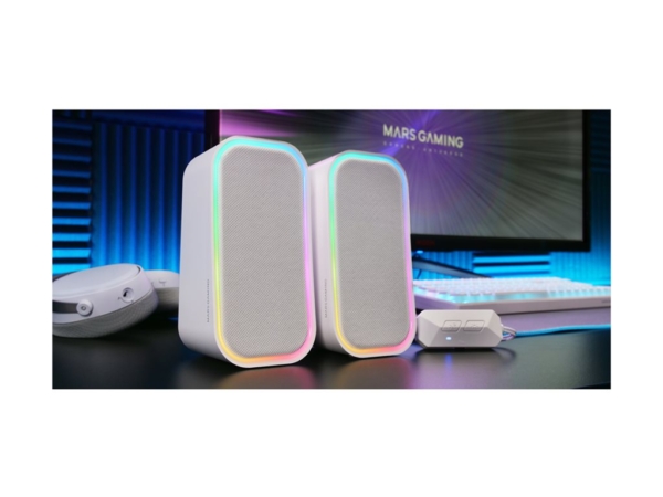 - MARS GAMING MS-OM BT 20W GAMING SPEAKERS, DYNAMIC RGB LIGHTING, CONTROL BOX, WHITE