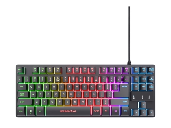 O conjunto Trust GXT 798 Thado Gaming Keyboard e Felox Gaming Mouse foi concebido para jogadores que procuram uma experiência versátil e envolvente. Este pacote 2 em 1 inclui um teclado TKL compacto com retroiluminação arco-íris, que melhora o apelo visual da sua configuração de jogo e proporciona uma experiência de digitação confortável. Com as suas 87 teclas, layout QWERTY e tecnologia de membrana, o teclado garante uma resposta rápida para todos os tipos de jogos. A ligação é simplificada através de uma interface USB e um cabo com 1,5 m de comprimento, permitindo flexibilidade durante o jogo. A complementar o teclado está o rato para jogos Felox, com conectividade com fios e uma resolução máxima de movimento de 6400 DPI, perfeito para precisão em todas as suas sessões de jogo. Com seis botões e sensibilidade em tempo real que alterna de 200 a 6400 DPI, ele oferece versatilidade e adaptabilidade. Juntos, este conjunto de teclado e mouse oferece uma solução completa para jogos compatível com consolas de jogos, Mac e ChromeOS, tornando-o uma excelente escolha para jogadores em várias plataformas.