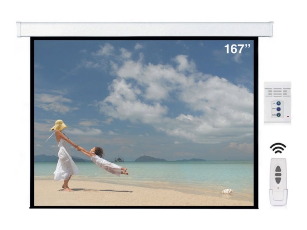 Operação motorizada conveniente O mecanismo motorizado permite a abertura e recolhimento da tela sem esforço, simplificando a configuração para qualquer apresentação ou noite de cinema.; Superfície branca mate de alta qualidade Esta tela de projeção possui uma superfície branca mate que melhora a precisão das cores e proporciona uma experiência de visualização suave, garantindo que os detalhes sejam mantidos.; Capacidades de montagem versáteis Com opções de montagem na parede e no teto, esta tela pode ser instalada em vários locais, adaptando-se a diferentes ambientes e necessidades do utilizador.; Amplo ângulo de visão de 160 O ângulo de visualização acomoda públicos maiores, tornando-a ideal para configurações em grupo, mantendo a nitidez da imagem.; Dimensões eficazes da imagem O ecrã oferece uma altura e largura de imagem de 290 cm cada, garantindo uma área de exibição substancial que proporciona uma experiência de visualização envolvente.