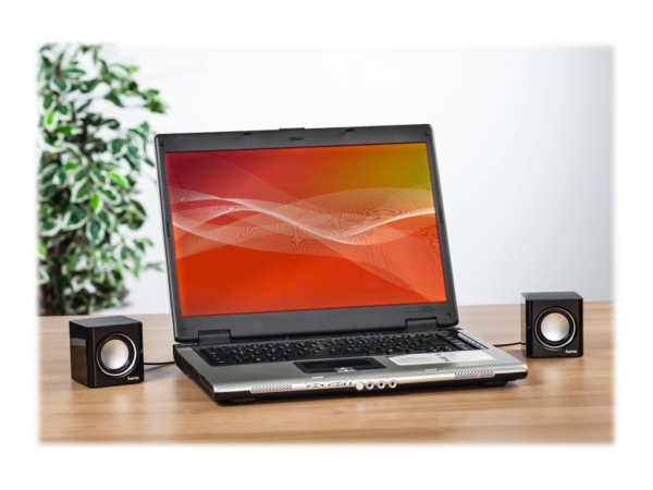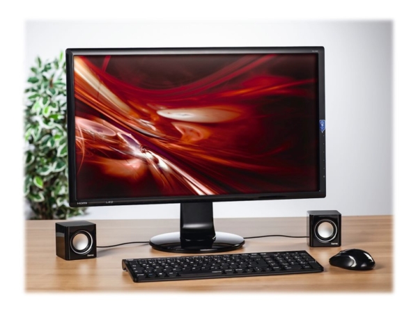 Desempenho áudio nítido O Hama Sonic Mobil 185 oferece uma resposta de frequência de 120 – 20.000 Hz, assegurando que tanto as frequências baixas como as altas são bem representadas para uma experiência de áudio equilibrada.; Conectividade USB simples Estes altifalantes são alimentados por USB, permitindo uma ligação fácil a um PC sem necessidade de adaptadores de alimentação ou baterias adicionais.; Design compacto e eficiente O tamanho compacto dos Sonic Mobil 185 torna-os ideais para utilização em secretária, proporcionando um som de qualidade sem ocupar espaço excessivo.; Amplificação integrada Com um tipo de amplificação ativa, estes altifalantes integram o amplificador no sistema, optimizando o desempenho sonoro e a simplicidade do design.; Controlos fáceis de utilizar Os altifalantes estão equipados com uma função de controlo de volume, permitindo aos utilizadores ajustar facilmente os níveis de som de acordo com as suas preferências para uma experiência de audição ideal.