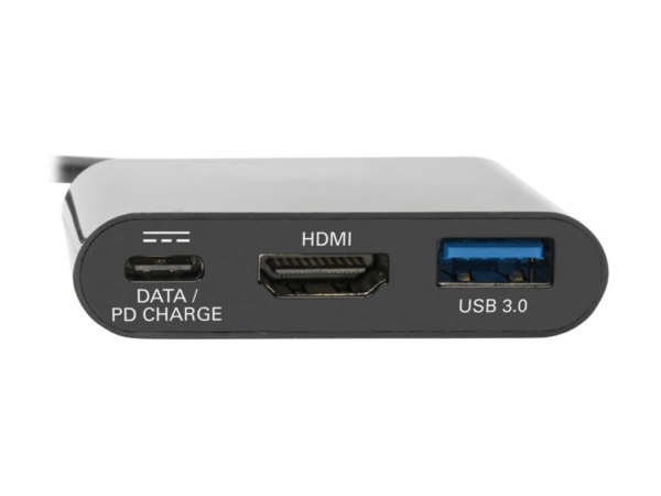 Conectividade versátil Este adaptador preenche a lacuna entre a tecnologia USB-C e HDMI, oferecendo uma ligação perfeita a uma vasta gama de dispositivos. Com a inclusão de uma porta SuperSpeed USB 3.0, os utilizadores podem desfrutar de transferência de dados a alta velocidade juntamente com saída de áudio e vídeo de alta definição.; Saída de alta definição Concebido para suportar a resolução de vídeo 4K x 2K a 30 Hz, este adaptador garante uma qualidade de visualização vibrante e nítida. Quer seja para apresentações profissionais ou transmissão de conteúdos de alta definição, os utilizadores podem esperar uma experiência de visualização envolvente.; Fornecimento de energia eficiente A funcionalidade USB-C com Power Delivery permite carregar o dispositivo ligado enquanto utiliza simultaneamente o adaptador. Isto garante que os utilizadores podem manter a produtividade sem se preocuparem com o esgotamento da bateria, tornando-o ideal para sessões de trabalho prolongadas ou viagens.; Design duradouro Os conectores niquelados e um formato de cabo robusto proporcionam uma maior durabilidade e fiabilidade. Este adaptador foi concebido para suportar os rigores da utilização diária, garantindo uma ligação duradoura e fiável.; Conformidade e compatibilidade Em conformidade com as normas FCC, HDCP 1.4, Plug-and-Play, REACH, RoHS e VW-1, este adaptador cumpre requisitos regulamentares rigorosos. A sua compatibilidade com portas Thunderbolt 3 aumenta ainda mais a sua utilidade em vários dispositivos e plataformas.