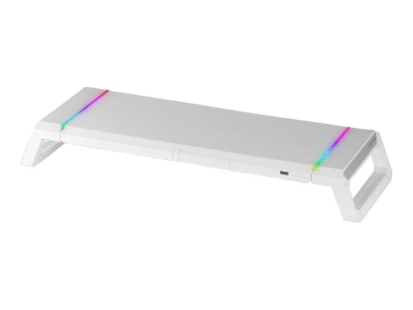 MARS GAMING MGS-ONE MONITOR STAND, RGB CHROMA, FRONT USB, PHONE & TABLET HOLDER, WHITE