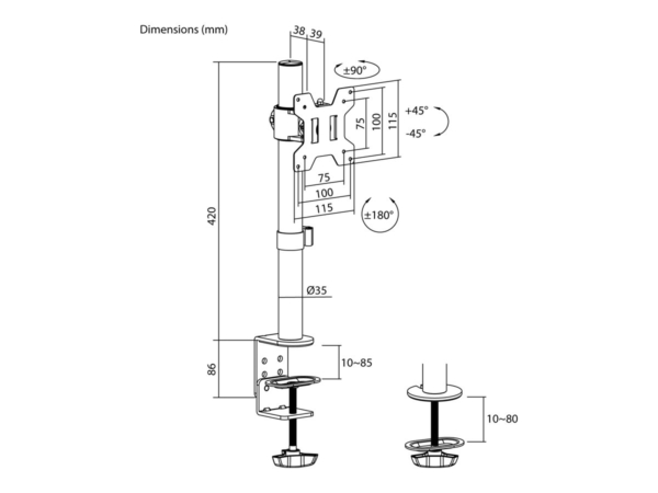 - NAPOFIX DESK MOUNT 13-32 INCH ROTATABLE 360 – DM1100