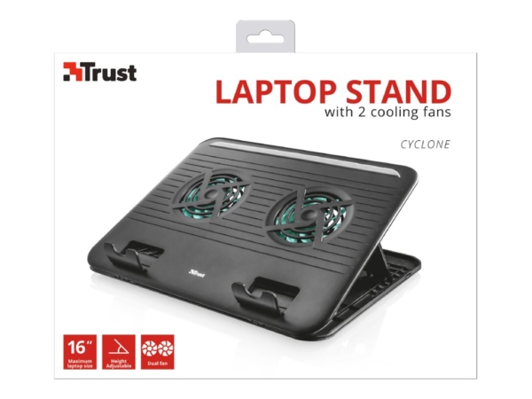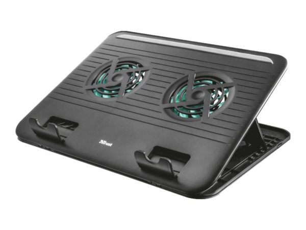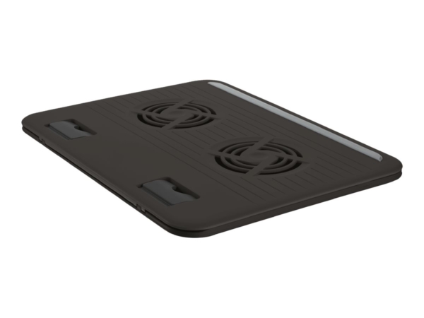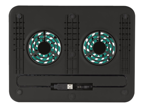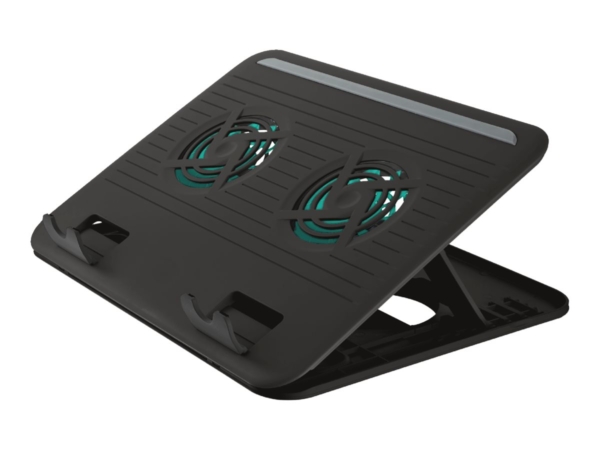 Suporte para portátil com duas ventoinhas silenciosas incorporadas, para uma inclinação de trabalho confortável e proteção contra sobreaquecimento; Configuração com 8 níveis de ajustamento para levantar e inclinar o ecrã e o teclado do seu portátil e, com isso, aumentar o seu conforto; Maior eficiência de ventilação do seu portátil e protege o seu mobiliário ou as pernas do calor; Indicado para qualquer portátil, netbook ou MacBook com ecrã até 16"; Ventoinhas alimentadas via USB: não necessita de ligar o suporte a uma tomada de parede; Almofadas protetoras em borracha que não deixam derrapar nem riscar o portátil; O cabo e a ficha USB podem ser guardados dentro do suporte quando não são utilizados