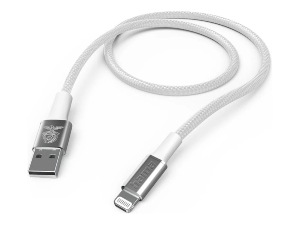 Construção robusta Este cabo possui um revestimento de nylon que aumenta a flexibilidade e oferece proteção adicional contra desgaste, garantindo uma utilização duradoura.; Transferência de dados eficiente Com uma taxa de transferência de dados de 480 Mbps, o cabo Lightning Hama Benfica permite uma transferência rápida e eficiente de ficheiros, tornando-o adequado para várias tarefas.; Conectividade versátil O design bidirecional permite que o cabo conecte dispositivos de forma integrada, aumentando a usabilidade com diferentes aparelhos.; Ligações seguras Equipado com um conector USB tipo A de 4 pinos e um conector Apple Lightning macho, este cabo proporciona uma ligação confiável e segura para os seus dispositivos.