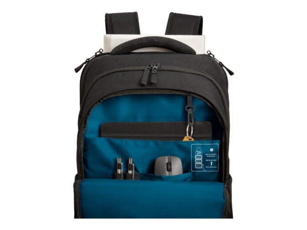 Transporte e proteja o seu portátil em grande estilo. O material principal da Mochila HP Professional (17,3 pol.) é feito de 100% de plásticos que teriam como destino os oceanos, enquanto todas as etiquetas, tiras e enchimento são obtidos a partir de materiais 100% biodegradáveis reciclados. E agora vem com um toque de cor.; Proteja os seus pertences de ladrões e carteiristas. Um bolso com proteção RFID protege os seus cartões de crédito e dados dos scanners, enquanto os fechos de correr para cadeado e bolsos de deslize mantêm os seus pertences escondidos e seguros. Além disso, há um bolso localizador Bluetooth para alojar o seu dispositivo de localização que localiza a sua mala.; Mantenha-se organizado com esta mala de transporte sempre que seja necessário deslocar-se, seja a trabalhar a partir de casa ou em viagem. Inúmeras bolsas de deslize e fecho garantem um compartimento seguro para os seus dispositivos, periféricos e cabos, bem como um cómodo canal de passagem de cabos, para que mantenha o seu telefone, power bank ou auscultadores ligados durante as suas deslocações.; Esta é uma mochila confortável. Use-a como mochila ou pegue na alça superior e vá para onde quiser. Uma prática alça de bagagem que se adapta às pegas da maioria das malas com rodas, simplificando as deslocações e as viagens.; Desinfete a sua mochila com um spray ou toalhita desinfetante. Apresente-se sempre no seu melhor com uma mochila fácil de limpar.