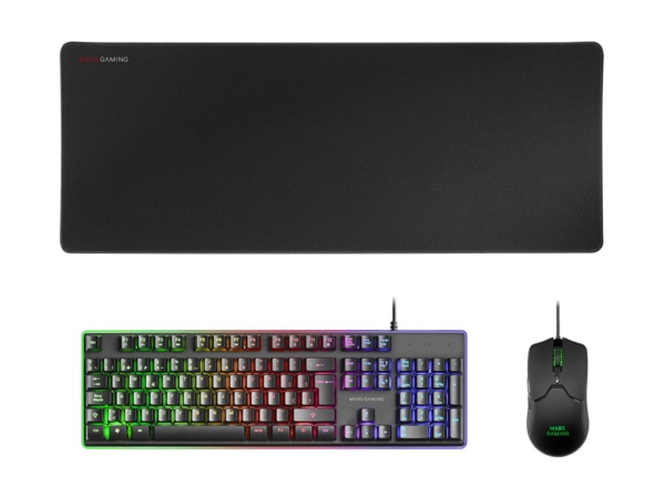 - MARS GAMING MCPX GAMING 3IN1 RGB KEYBOARD, MOUSE, XL MOUSEPAD, BLACK, PORTUGUESE